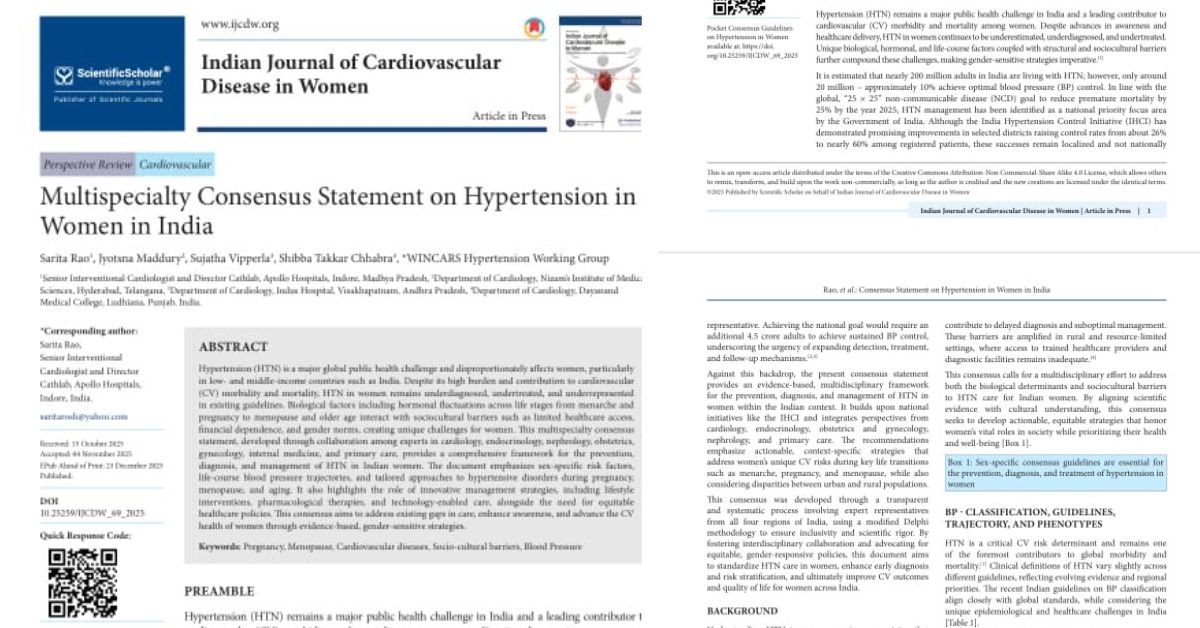 Women constitute a significant portion of the population, yet women-specific clinical guidelines have long been lacking. We are proud to announce the publication of India’s first multi-speciality consensus on hypertension in women by the WINCARS Hypertension Working Group. This landmark initiative marks a crucial step toward improving healthcare outcomes for women.